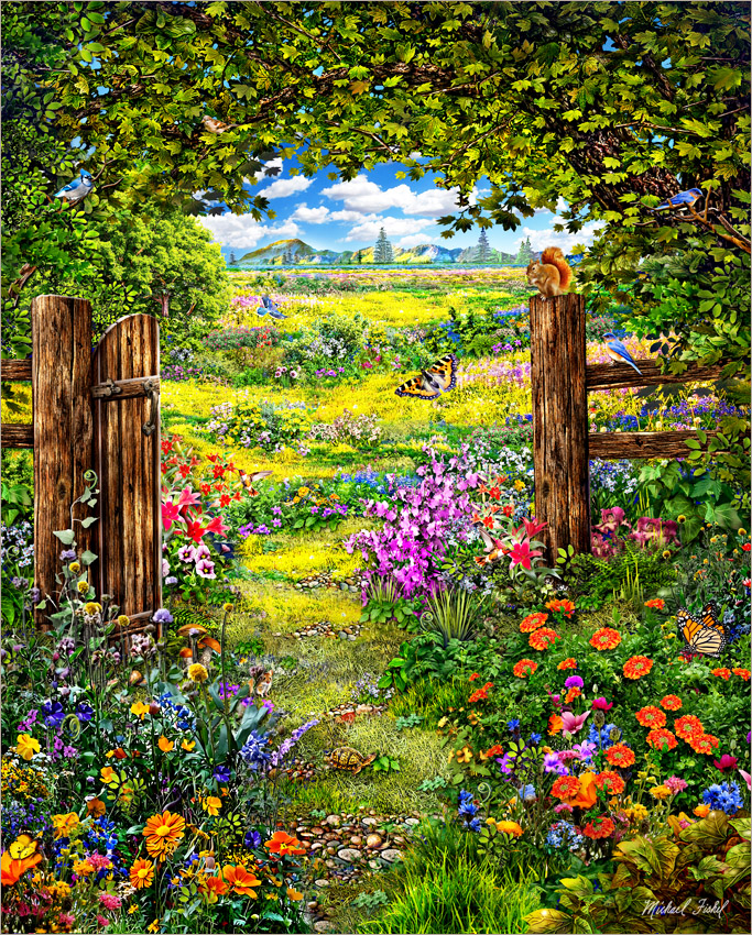 Since the 1970's the paintings of artist Michael Fishel have been seen worldwide as posters, prints, jigsaw puzzles and calendars. In 1976 his art was first published by the Big O poster co. U.K. along side artists Roger Dean, Rodney Matthews, Robert Venosa, Mati Klarwein and H.R. Giger among others. During the 1980's Michael illustrated RPG books for TSR Hobbies better known now as Dungeons & Dragons and later he painted cover art for books by H.P. Lovecraft and Richard Adams. Michael's painting's were created to be enjoyed by everyone young or old, so sit back, relax, dream a little and let yourself wander through the enchanting worlds of this extraordinary artist. -